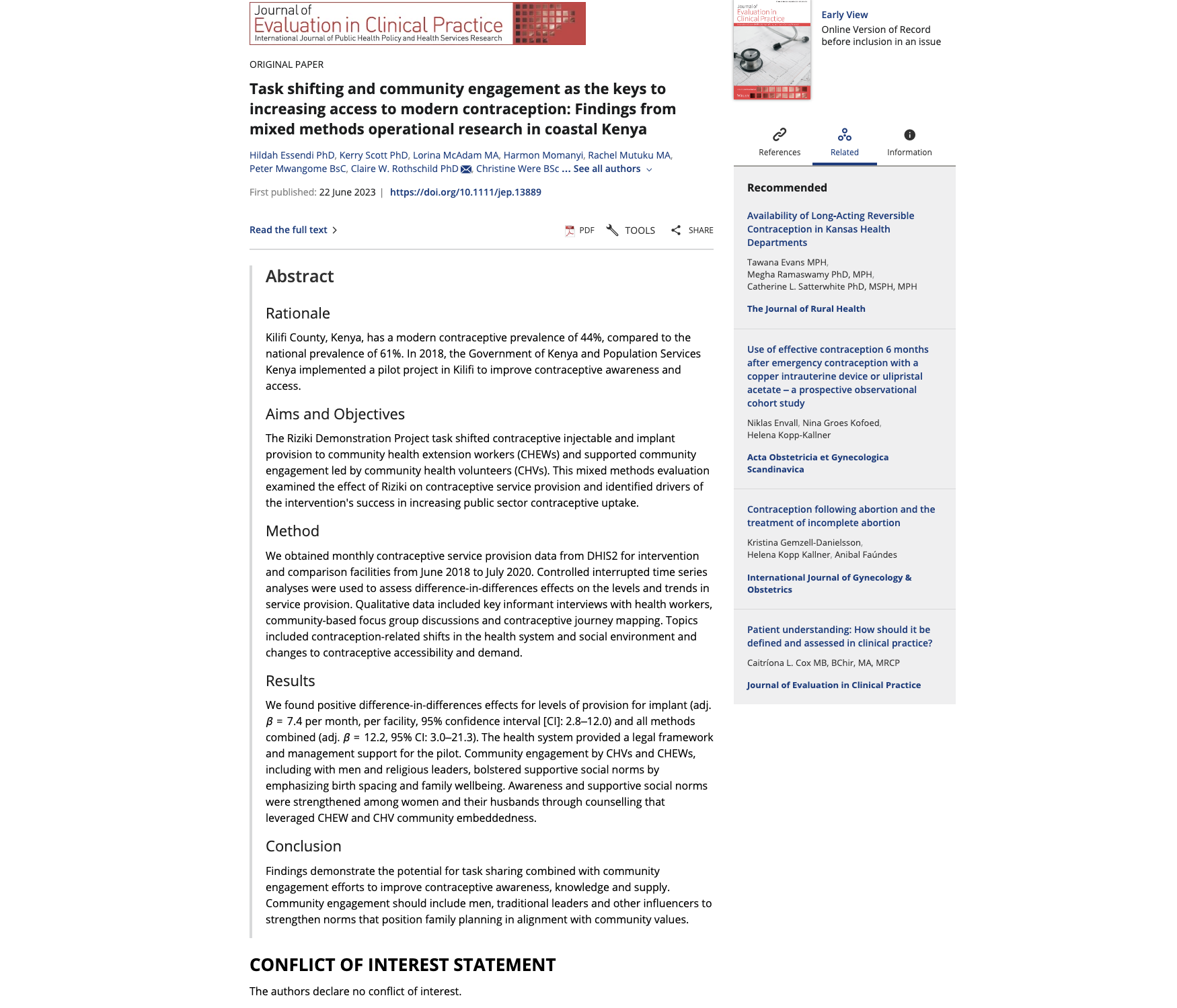 Link: Task shifting and community engagement as the keys to increasing access to modern contraception: Findings from mixed methods operational research in coastal Kenya